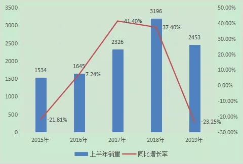同比2018年下滑23.25%